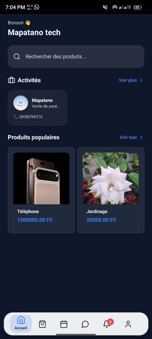 Mapatano offre une suite complète de fonctionnalités pour faciliter vos échanges commerciaux en RDC